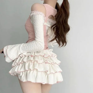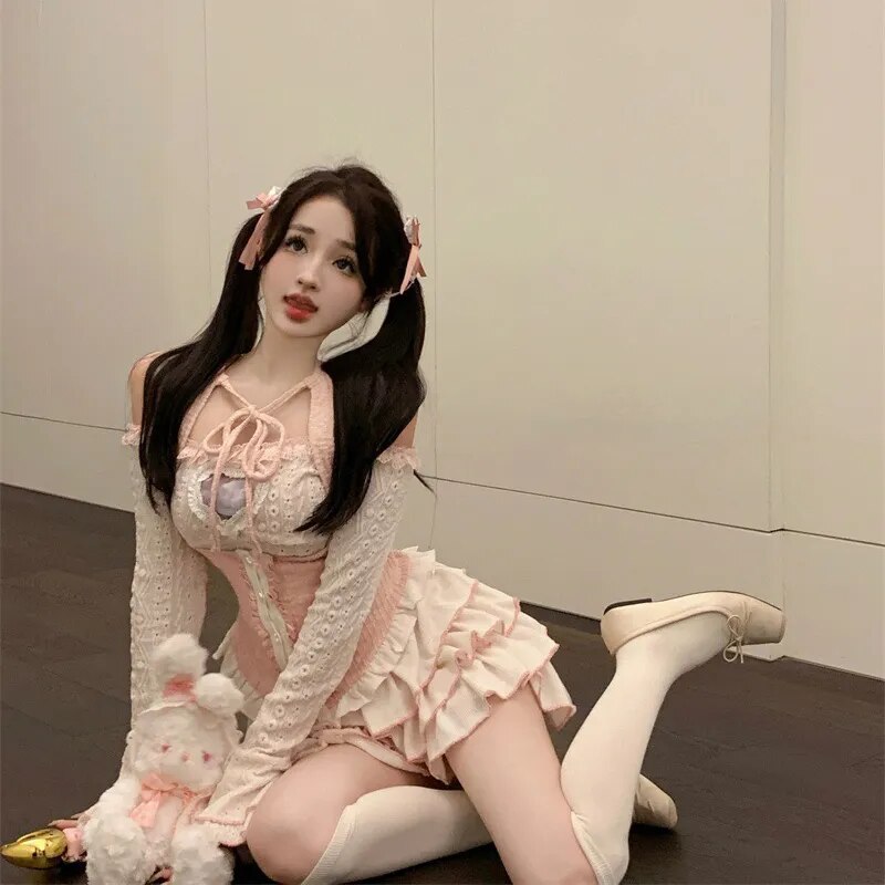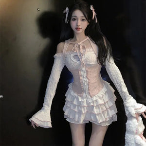 Discover the angelic charm of the "Cinched & Pretty Babydoll Outfit," a heavenly blend of soft pinks and whites inspired by the whimsical beauty of angelcore aesthetics. Perfect for anyone who loves to float through life with a gentle, playful spirit!