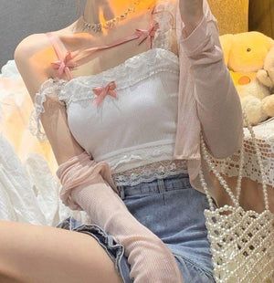 • 💖 Classic cropped length with soft pink ribbons for a flirty, vintage touch.