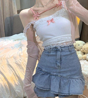 • 🎀 Silky ribbons, lace spaghetti straps, and bows – designed for that perfect ethereal vibe.