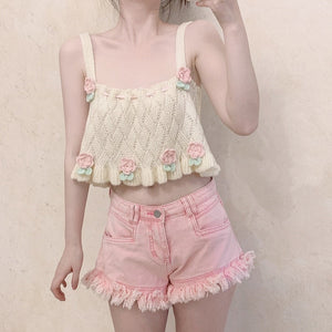 Embrace your inner fairy with our Angelcore-Inspired Soft Pink Tulip Accent Tank Top. This sweet and angelic piece is designed to be the star of your wardrobe! With its soft, textured knit fabric and beautiful 3D tulip flowers, this tank top exudes ethereal beauty. The delicate cable knit crochet detail adds to its dreamy, fairy-like charm. Whether you’re channeling dollette, nymphette, or coquette vibes, this top will have you feeling like a true princess. 💖