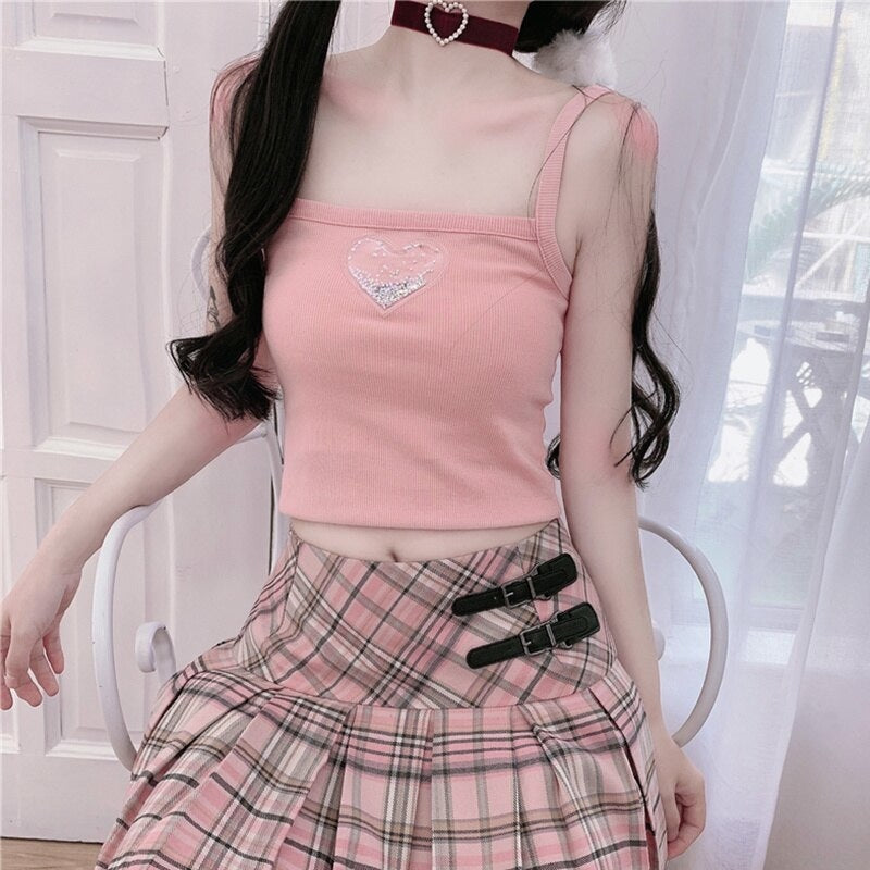 Bring a touch of magic to your wardrobe with our Princess-Inspired Liquid Glitter Heart Tank Top! This sweet, ethereal piece is perfect for lovers of soft, fairy-like fashion. The cute, squishy liquid glitter heart on the chest adds a playful Y2K touch to this adorable pink tank, while the soft textured knit fabric keeps you feeling comfy all day. With its spaghetti straps and perfect cropped length, this top is made for showing off your inner dollette, nymphette, or coquette vibe! đź’«