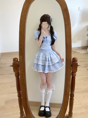 Blue Plaid Babydoll Outfit Set: Cutecore Charm