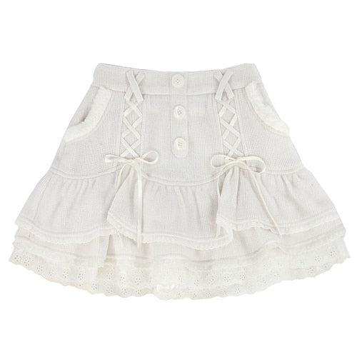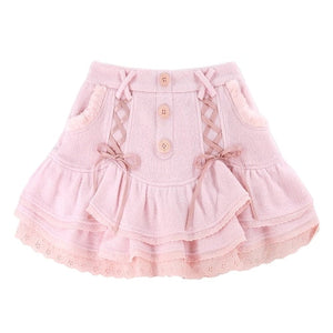 Our light pink corduroy skirt is a dream come true with its elegant lace corsetry, delicate buttons, and layered cake skirt design featuring gorgeous doily lace trim. This skirt is the epitome of fairycore vibes and brings all the angelic charm to your wardrobe. 💖