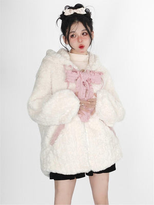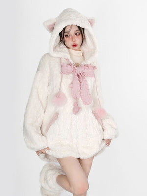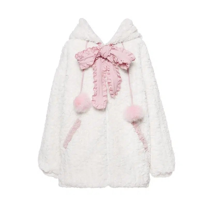 Fuzzy Neko Pompom Hooded Coat