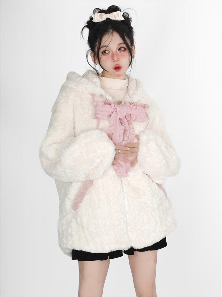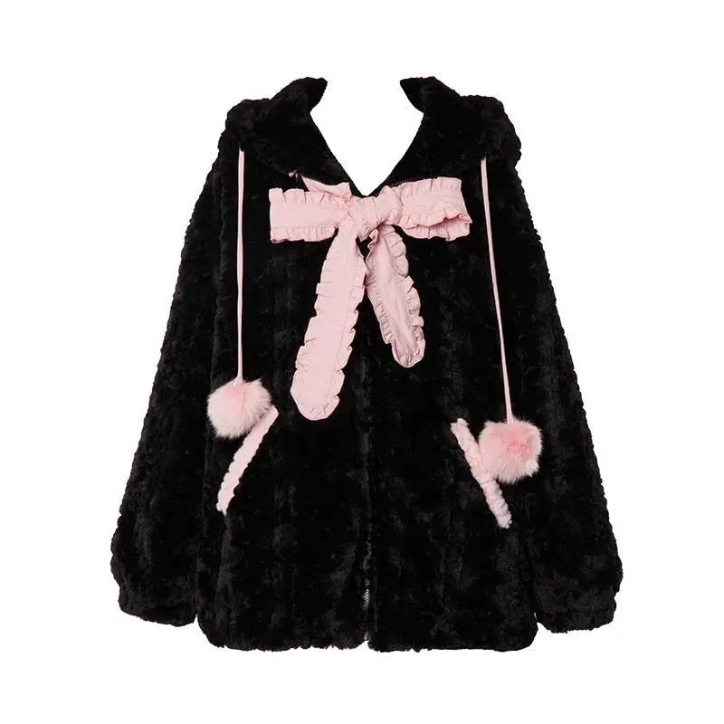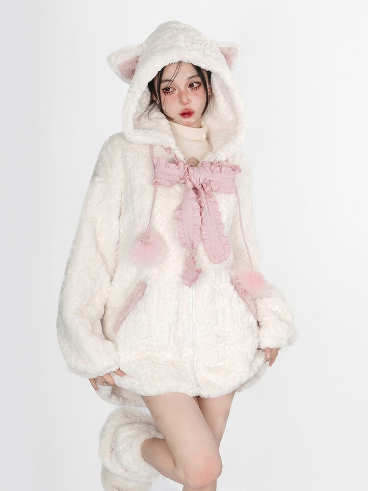 Fuzzy Neko Pompom Hooded Coat 🐾💖