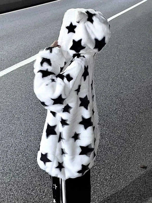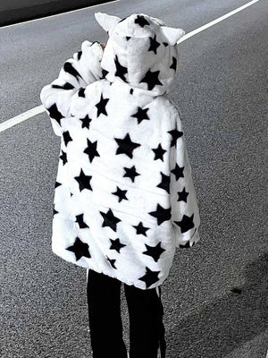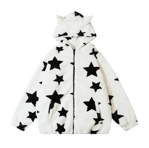 Fuzzy Star Oversized Zip Up Hoodie 🌟✨ – Cozy, Cute, and Kawaii!