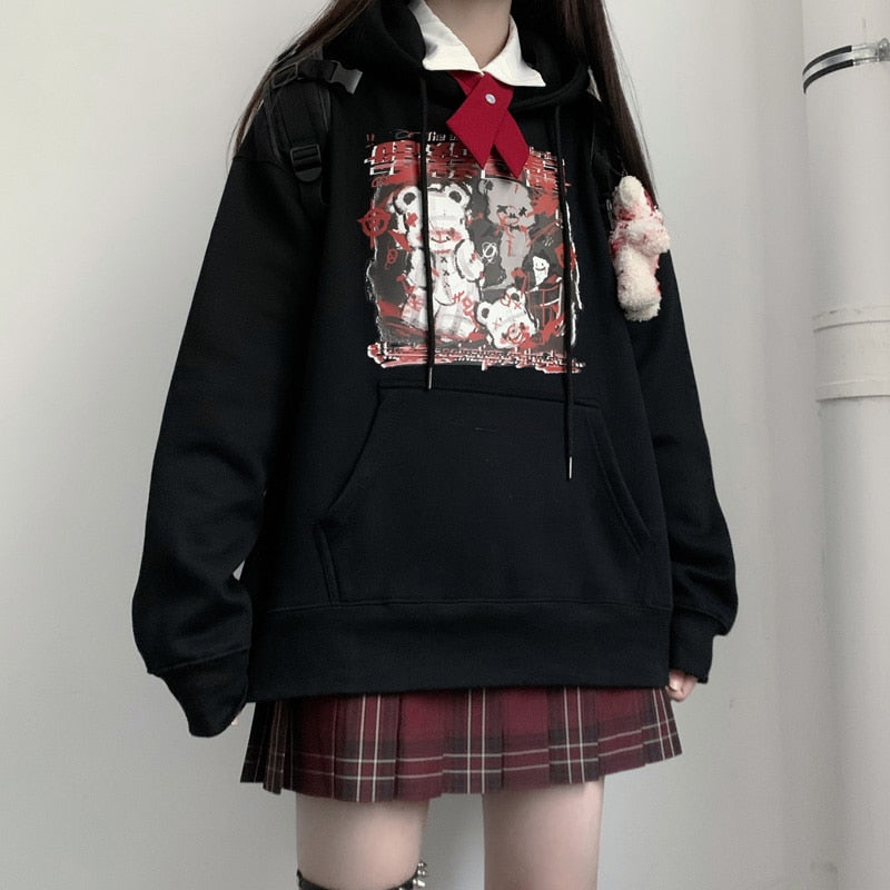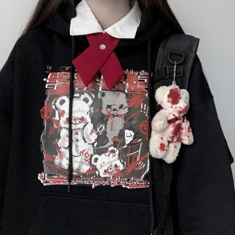Menhera-Inspired Creepy Teddy Bear Hooded Sweatshirt 🖤🐻✨