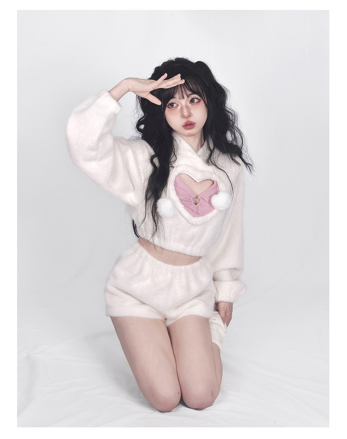 • 💫 The white fluffy fabric gives off a kawaii, precious vibe, making this set perfect for Valentine’s Day or year-round wear!