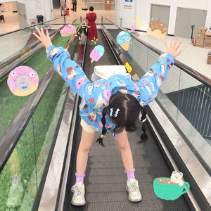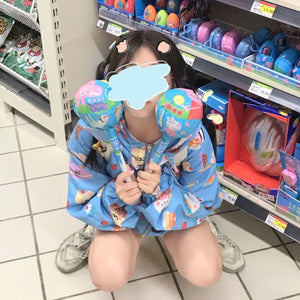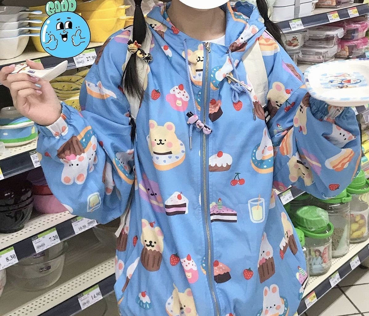 This gorgeous bunny-inspired windbreaker coat featuring yummy snack foods is the perfect way to protect you from the cold wind chill during the winter seasons! Stay warm and stylish while showcasing your love for cute and tasty treats.