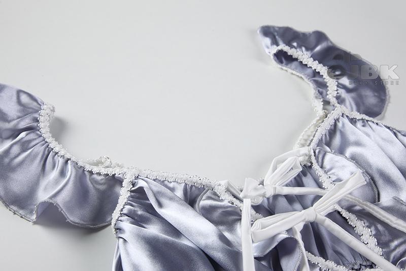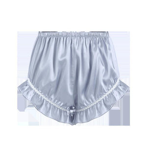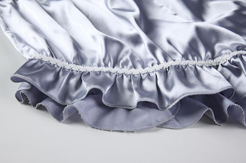 This luxurious silky satin lace-up lingerie sleep set is adorned with beautiful hand-details, including ruffled trim, silky bows, and a stunning lace-up peekaboo chest paired with matching bloomer shorts. The set is crafted from comfortable, flattering fabric that feels so lightweight you'll barely notice you're wearing it!