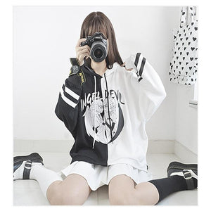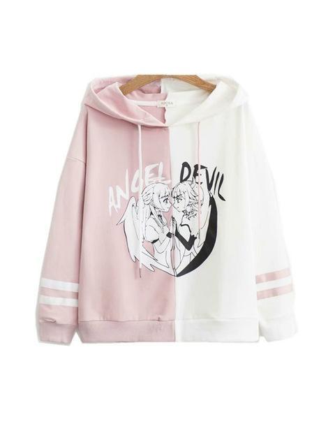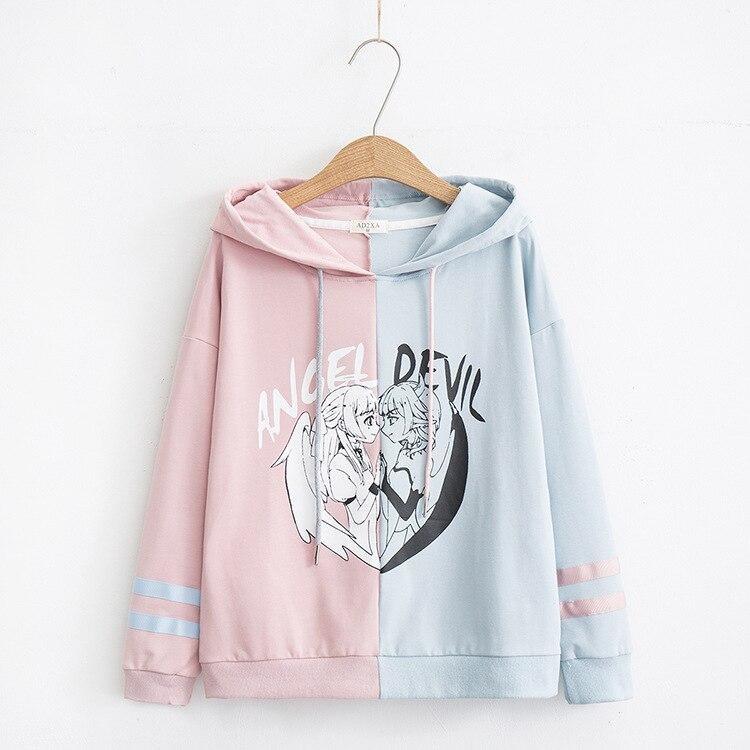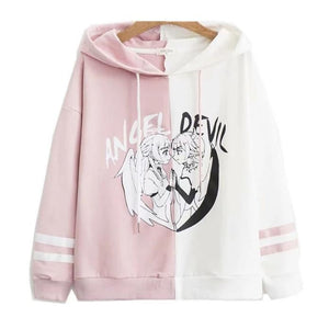 This anime-inspired Angel vs Devil pastel goth hoodie is a must-have for any otaku with a love for kawaii, artistic, and creepy cute fashion!