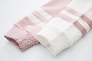 • 😈 Striped Sleeves: Featuring long sleeves with contrasting stripes and a warm drawstring hood.
