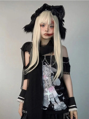 Step into the whimsical world of kawaii fashion with our **Pastel Menhera Off The Shoulder Tee**! This adorable top is a unique fusion of cute and edgy, bringing the perfect menhera vibes to your wardrobe. Whether you're aiming for a fairy kei aesthetic or a bold gothic look, this tee has you covered. 🎀