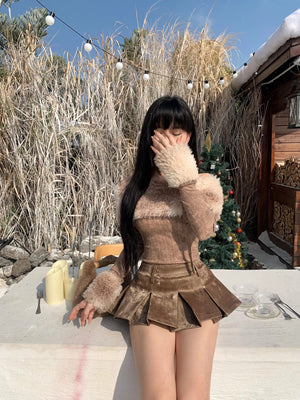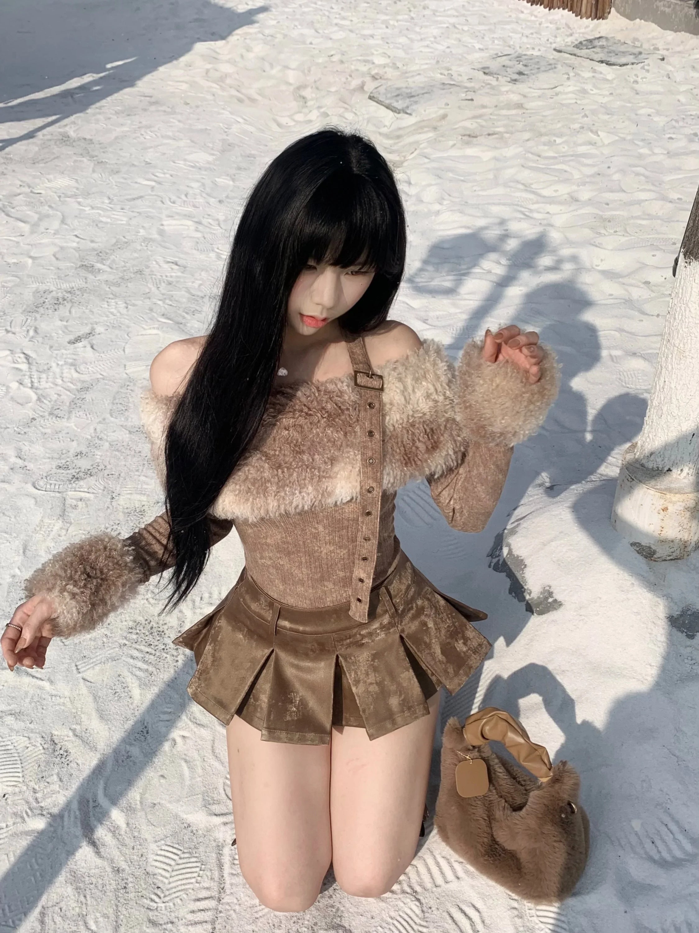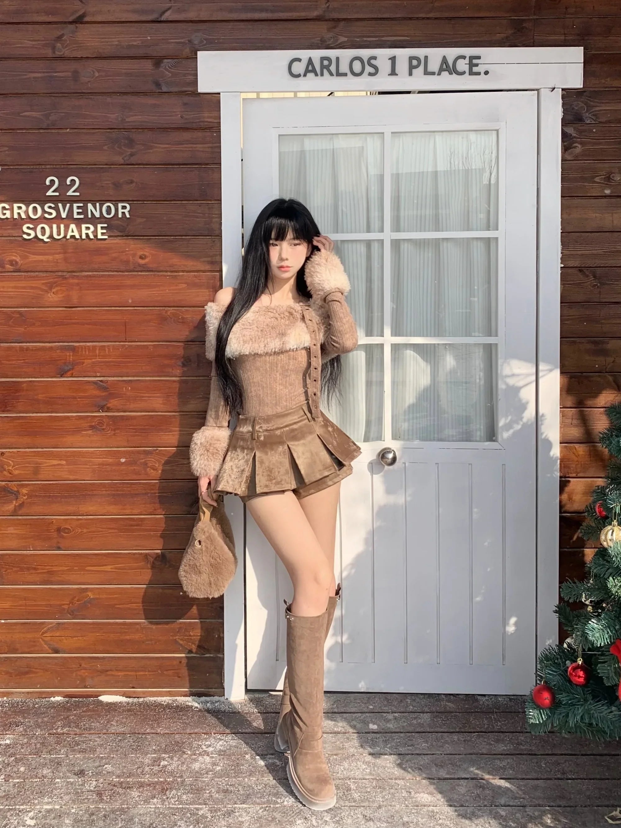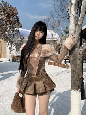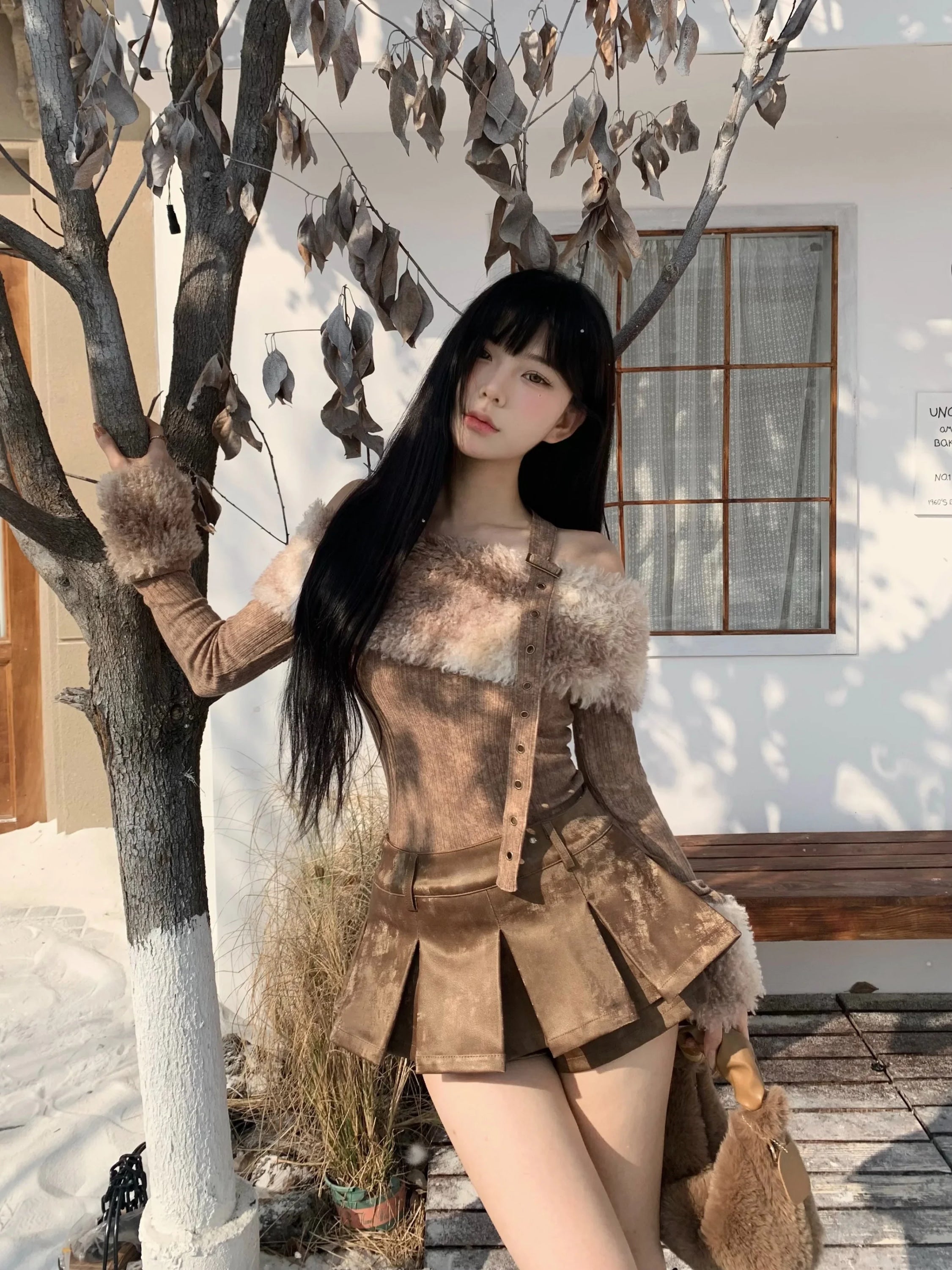 • Chic Pleated Skirt Design – Crafted in a rich brown hue, this pleated skirt adds playful movement to your stride while capturing the spirit of the Nordic lands. A kawaii warrior look with a bouncy, fun twist! 🌿👗