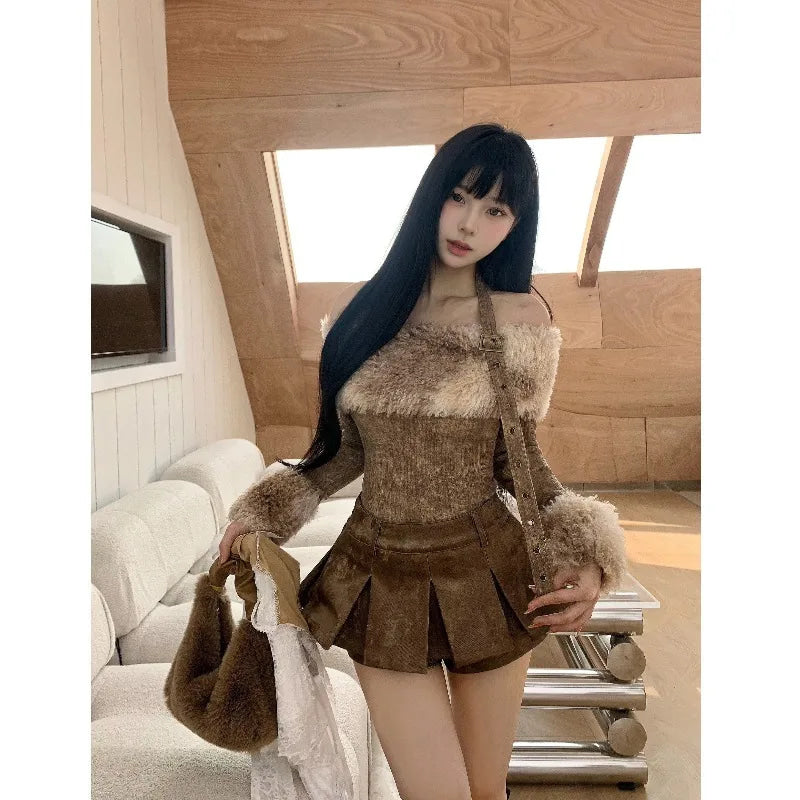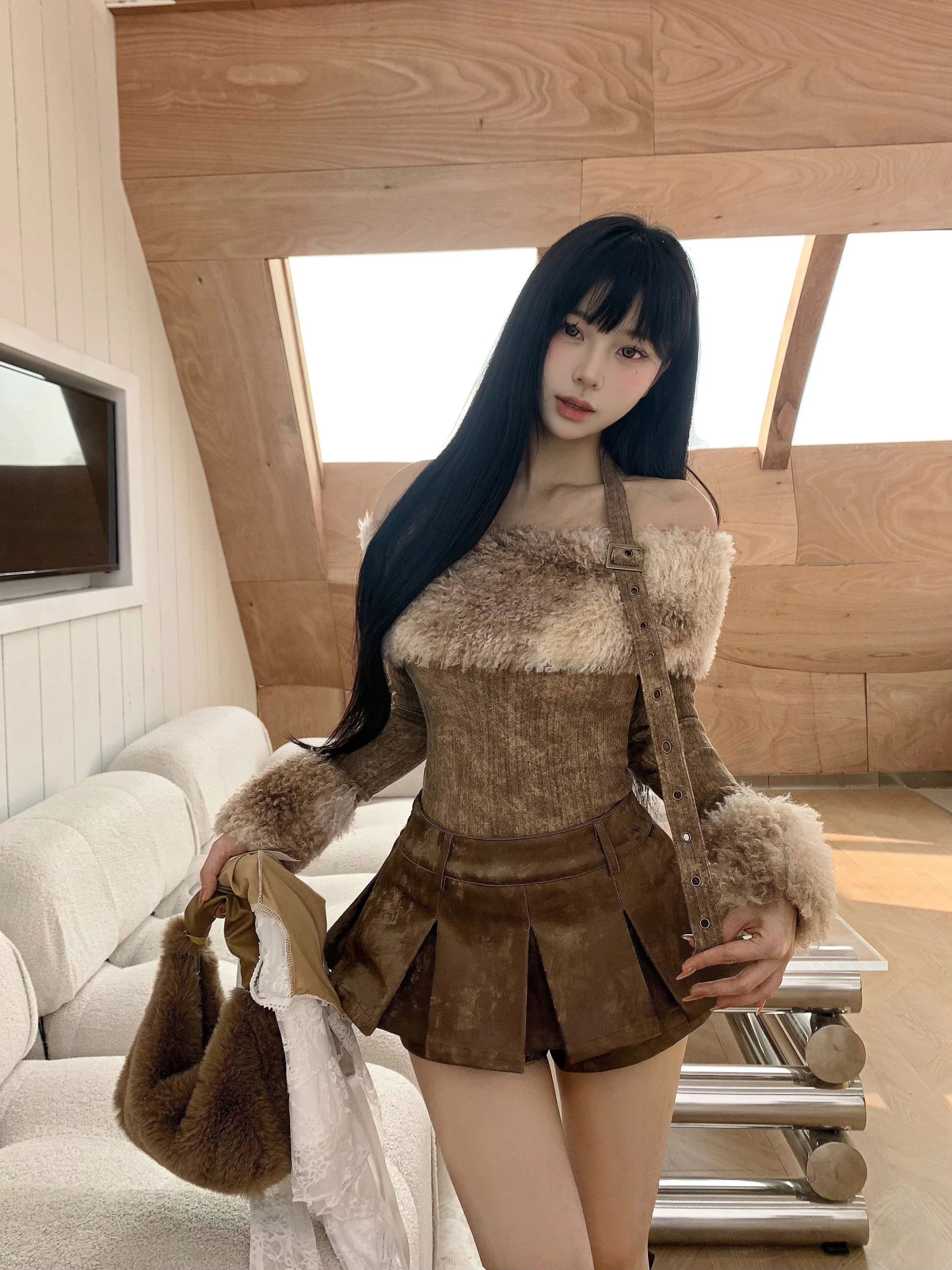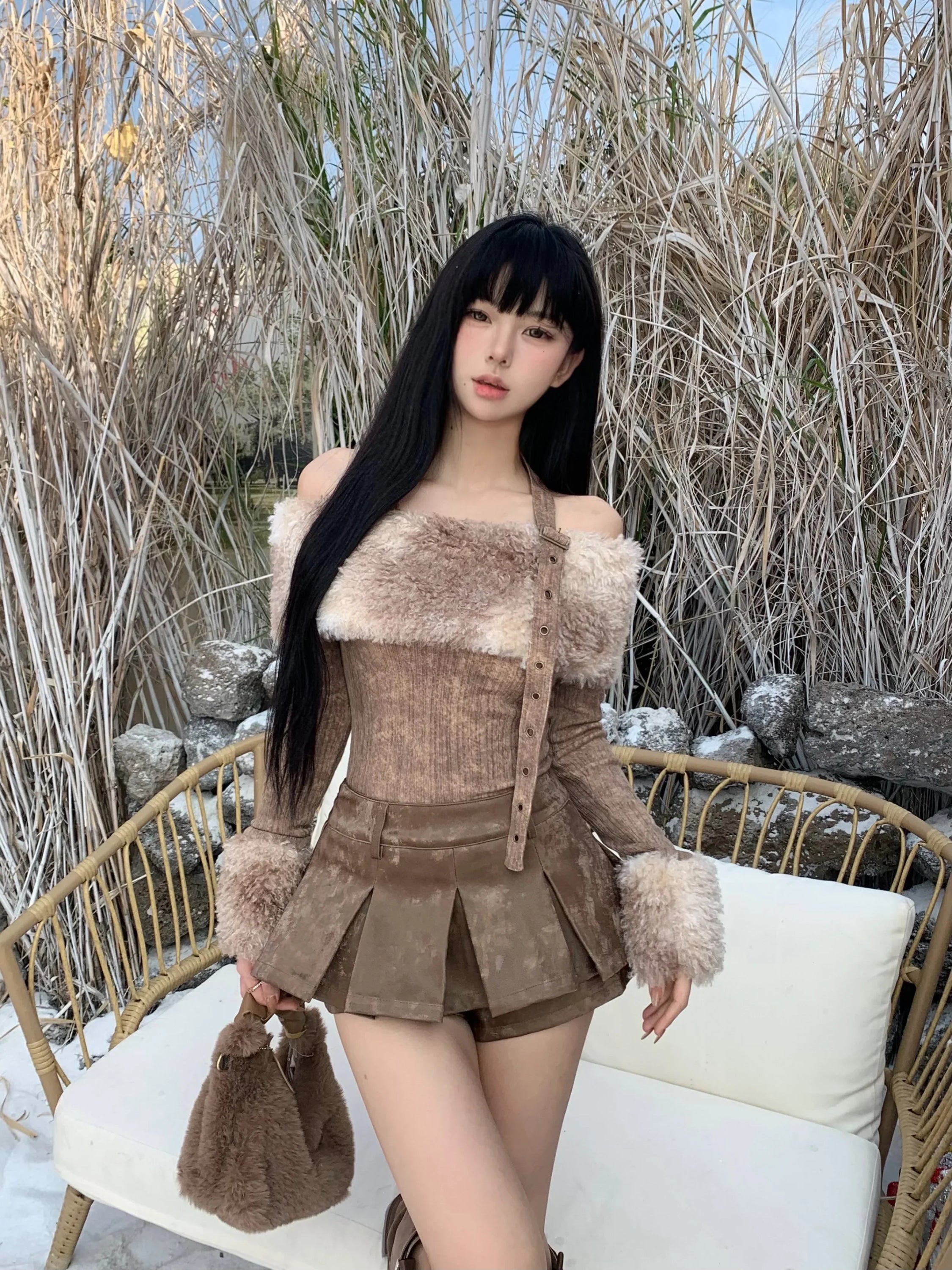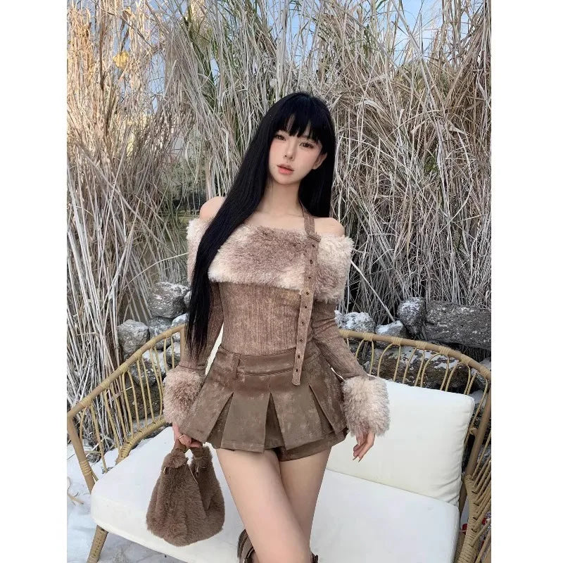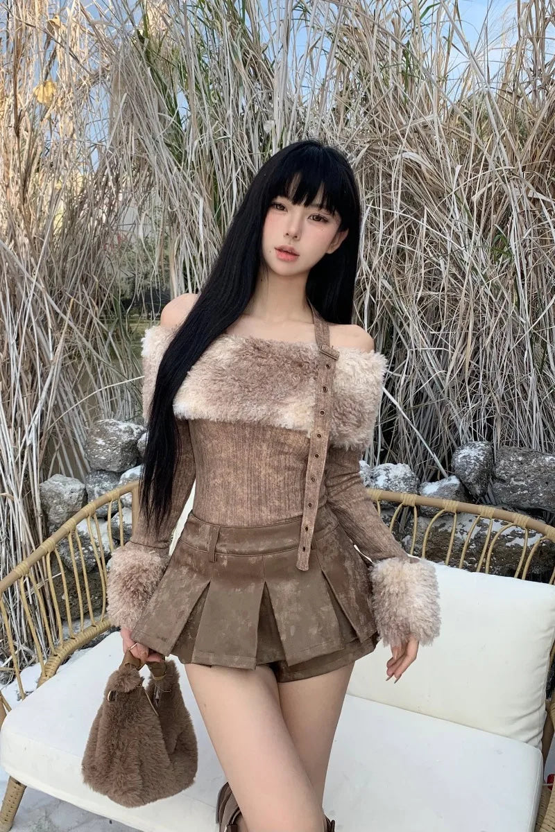 • Chic Pleated Skirt Design – Crafted in a rich brown hue, this pleated skirt adds playful movement to your stride while capturing the spirit of the Nordic lands. A kawaii warrior look with a bouncy, fun twist! 🌿👗