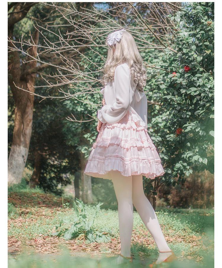 No expense was spared in creating this exquisite dress. With beautiful layers of ruffles, delicate lace trim, elegant bows, and silk ribbon details, every inch of this dress exudes charm. The expertly designed skirt looks fabulous with or without a petticoat, offering versatility for any kawaii princess. 🎀
