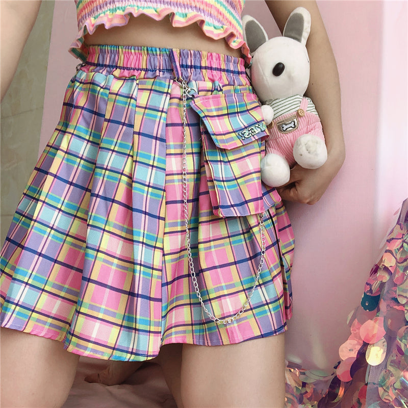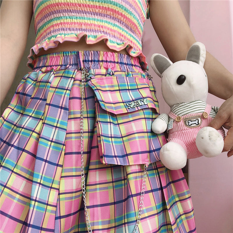 Badass Bubblegum Rainbow Plaid Skirt – Slay in Style! 💖