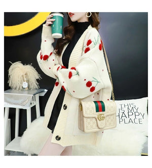 This sweet little cherry cardigan will have you feeling like a precious babe instantly! Made from luxurious knit material that feels amazing against the skin, this cardigan is adorned with adorable cherry embroidery and cute button details.