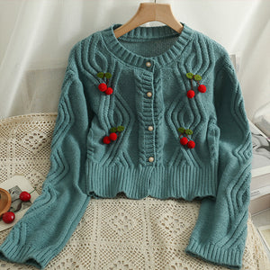 Brighten up your wardrobe with the Cherry Knitted Cropped Cardigan, a charming piece that perfectly marries comfort with kawaii style. 🌸