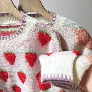 Fuzzy Peach & Strawberry Fruit Embroidered Sweatshirt 🍑🍓