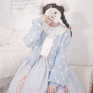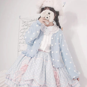 Say hello to the ultimate kawaii cardigan! The Polkadot Heart Knit Cardigan is your go-to for soft, pastel, and playful looks. With its cute heart pattern and ruffled details, this piece adds instant charm to any outfit. đź’«