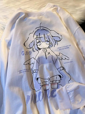 Feel like a cute angel in this kawaii sweatshirt featuring a cute chibi girl in a bunny outfit with wings printed on the front! Made from a blend of polyester and cotton with a loose, lightweight fit. Available in both white and black! A heavenly addition to your wardrobe. The print may look different in person due to screen color differences.