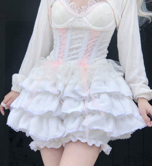 Slip into ultimate softness with the Fuzzy White Ruffled Bloomers! These dreamy layered shorts bring major kawaii energy with their plush texture and frilly volume. Perfect for lounging or layering. 🧁