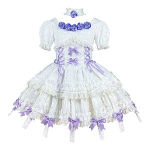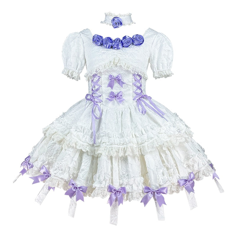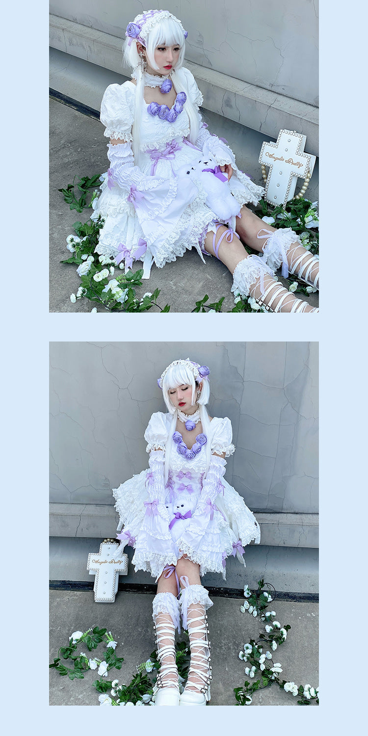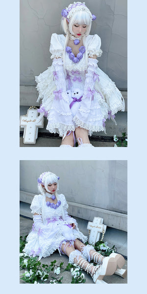 Step into the world of fairycore and lolita fashion with the Purple Rose Ethereal Lace Lolita Dress. This white and purple dress exudes sophistication and angelic charm, perfect for tea parties or special events. ✨
