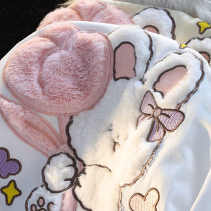 Get cozy with the "Tulip Bunny Fluffy Tee", featuring the fluffiest white bunny holding a pink tulip. Perfect for a comfy, kawaii look this season!