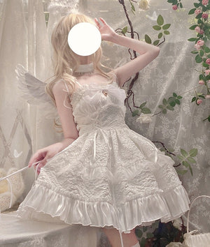 Feel the magic with the Magical Princess Lace Dress. With delicate ruffles, bows, and exquisite lace details, this dress makes you feel like an ethereal fairy. The lace-up front and silk chiffon accents at the neckline add elegance and youthfulness, perfect for bridal showers, summer days, or whenever you want to feel angelic. 🌸
