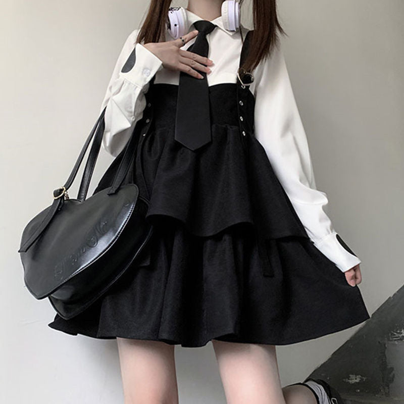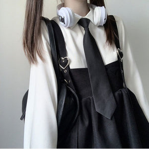Step into the spotlight with the adorable black heart suspender dress! Perfect for those who love to blend kawaii fashion with a touch of goth, this dress is a must-have for any trendsetter. The bold suspenders and high waist make this look truly stand out, adding both style and charm to your wardrobe.