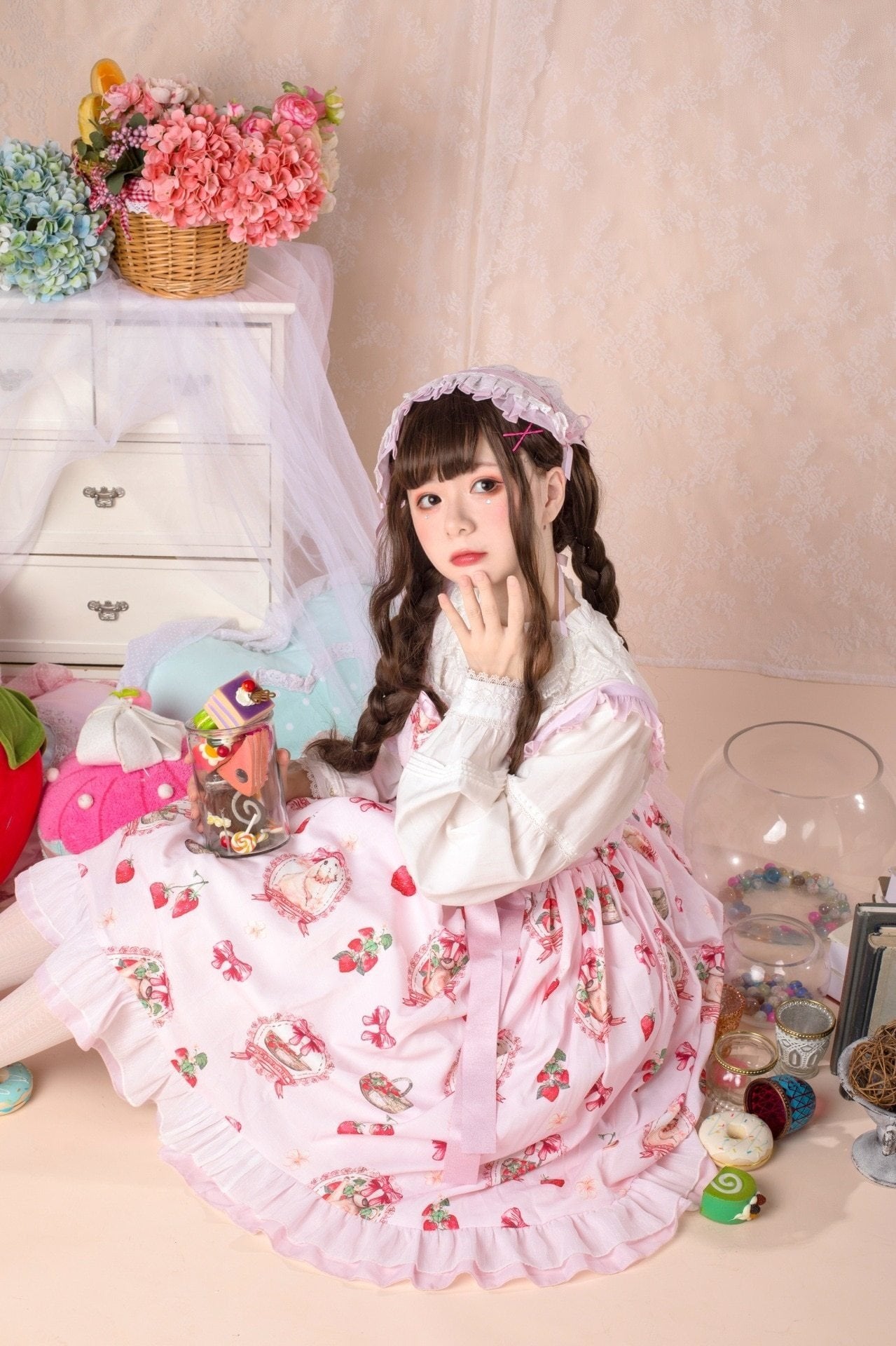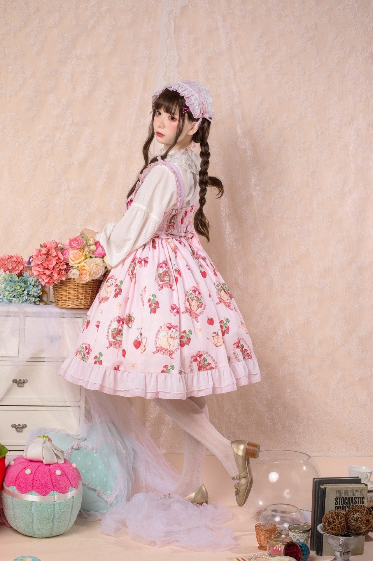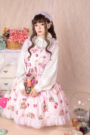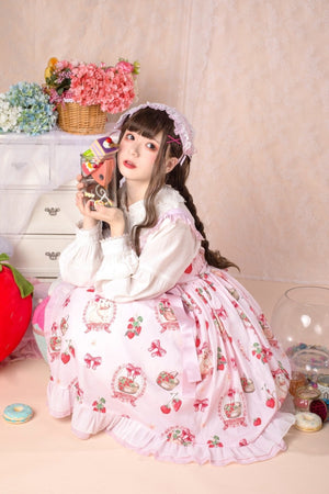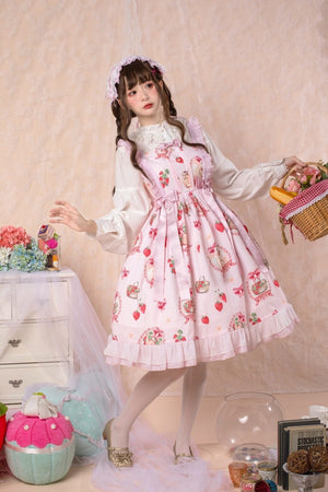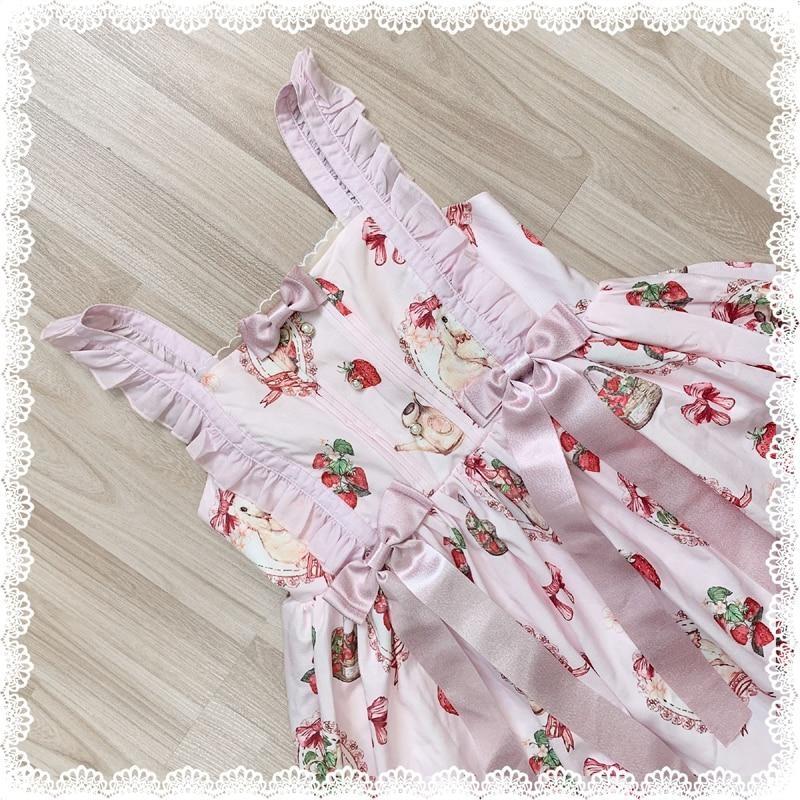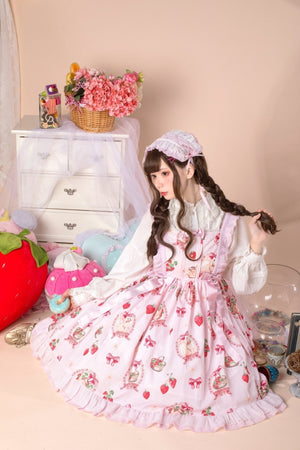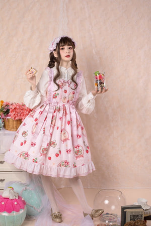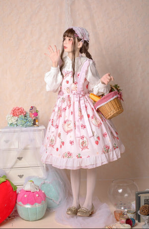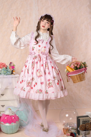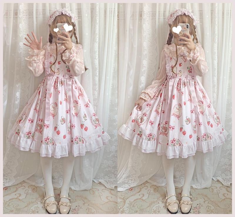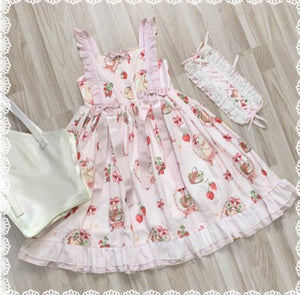 Traditional Sweet Strawberry Bunny Lolita Dress 🍓🐇 – Pastel Country Charm